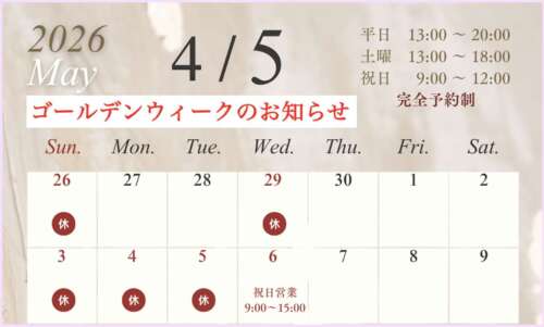 2026年4月23日ゴールデンウィークの営業日のお知らせになります。